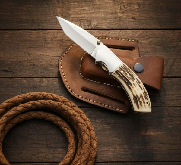 Cowboy knife with stag handle